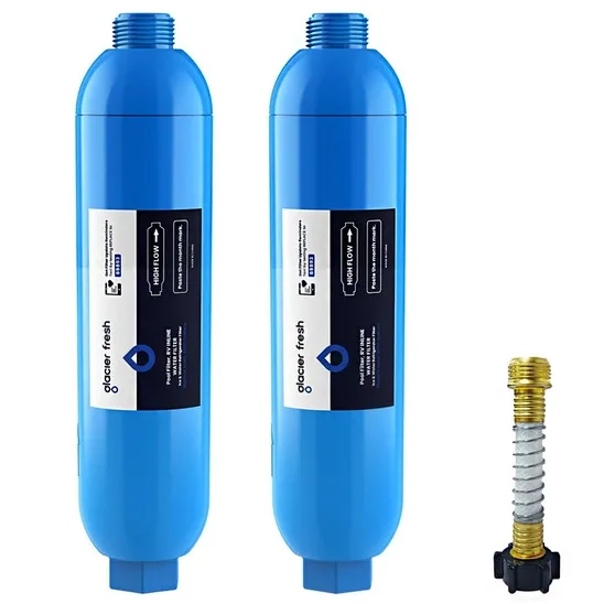 Product Name | GLACIER FRESH RV/Marine Water Filter with 1 Flexible Hose Protector, Greatly Reduces Bad Taste, Odors, Chlorine and Sediment in Drinking Water, 2 Pack |