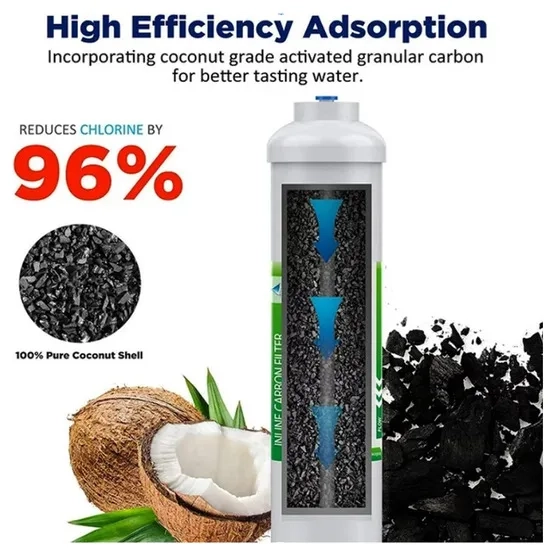 Membrane Solutions inline water filter offers outstanding water filtration capabilities and ensures clean and fresh water for various applications. With its versatile design, this in-line filter can be installed in any 1/4" water line, making it suitable for refrigerators, ice makers, water coolers, beverage equipment, coffee makers, drinking fountains, sink faucets, and RVs. It is made with BPA-free coconut shell activated carbon, and has a high iodine absorption capacity, ensuring that the water remains healthy and safe for consumption. Coconut-based carbon effectively removes chlorine, bad taste, and odor, significantly improving drinking water's taste and quality, and providing a fresher, crisper, and more pleasant drinking experience.