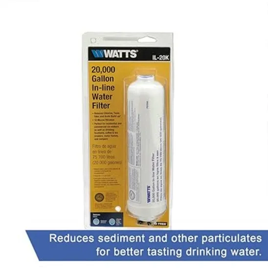 Product Name | Watts Inline Water Filter 20,000 gallon Capacity- Inline Filter for refrigerator, Ice Maker, Under Sink, and Reduces Bad Taste, Odors, Chlorine and Sediment in Drinking Water |