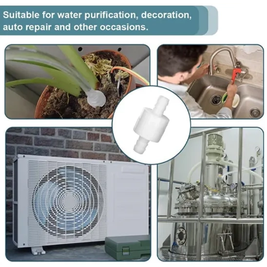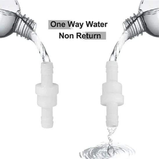 The Mudder one way check valve is designed for a wide range of industries and applications, including water treatment, air purification, machinery industry, automotive parts, agriculture, medical equipment, household appliances, and more. This non-return one-way check valve features high-quality construction and reliable performance and offers flexibility and compatibility with various systems. The Mudder non-return check valve is applicable for fluid systems to prevent countercurrent liquids, or for pneumatic systems to prevent reverse flow of compressed air. This product is made of PVDF, so it is sturdy and wear-resistant, ensuring durability and long-term use. The pipe port of the check valve is designed with a pagoda-shaped card slot, non-slip and non-toxic, with good airtightness and good adsorption performance. The Mudder one-way check valve has an easy installation, and you can easily unscrew and replace it.