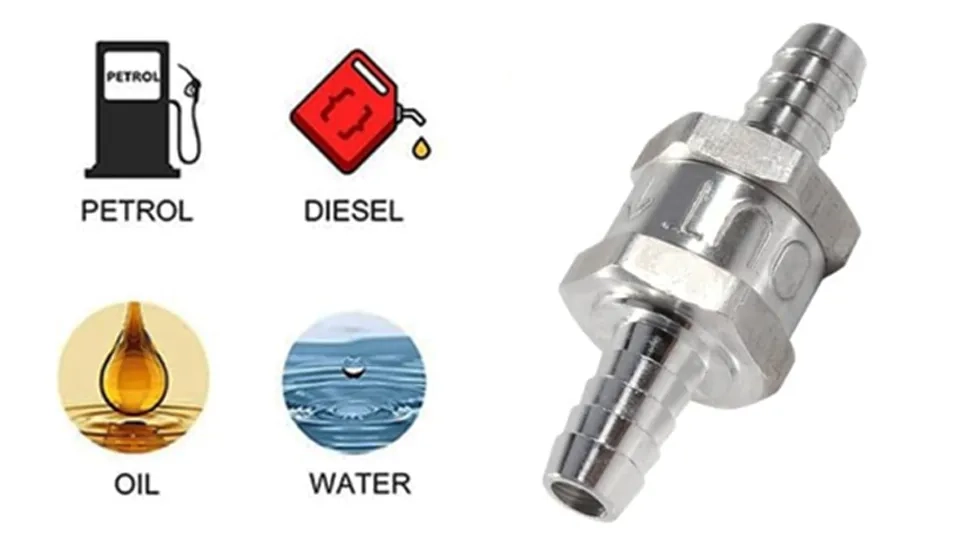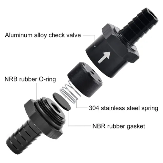 The EVIL ENERGY check valve is a durable and efficient piece designed to prevent fuel and water from returning to the tank and maintain its flow in the pipeline. This check valve is made of high-quality aluminum alloy, 304 stainless steel spring, NBR rubber gasket, and O-ring. This one way non-return check valve offers a longer service life compared to plastic check valves. The EVIL ENERGY one way non-return check valve is not limited to fuel applications is suitable for air, gas, water, oil, and other liquids, and has versatility in different industries and applications. It is not recommended to use the product for Methanol. This check valve is widely used in vacuum systems, carburetors, and low-pressure fuel systems. It has high stability, and durability and ensures reliable performance in various applications. High-quality construction and ease of installation make the EVIL ENERGY one-way valve an ideal choice to ensure smooth and reliable operation of fuel and fluid systems.