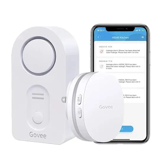 Govee WiFi Water Sensor is a smart app that notifies users of water leakage and dripping through Wi-Fi. The Govee smart system supports WiFi 2.4G and immediately sends program notifications and home water-related alerts to the user's phone with a 100dB adjustable sound alarm.