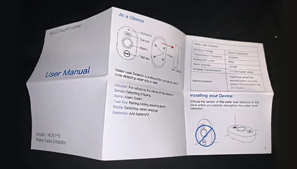 Table. Features and Descriptions of X-Sense Water Leak Sensor Alarm