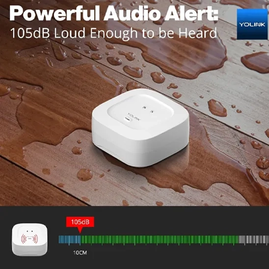 YoSmart Smart Water Leak Detector can immediately notify the user of water leaks to prevent damage to the home. This product can be easily installed near or under different parts of the house and anywhere at risk of leaking. YoLink wireless Water Sensor is perfect for toilets, water heaters, laundry machines, dishwashers, sinks, fish tanks, sump pumps, and other potential water leak areas. This system provides an industry-leading receiving range of up to 1/4 mile as it is powered by LoRa technology. This product reacts quickly to emergencies and safeguard your space from water damage, and notifies you with its robust 105dB audio alarm.