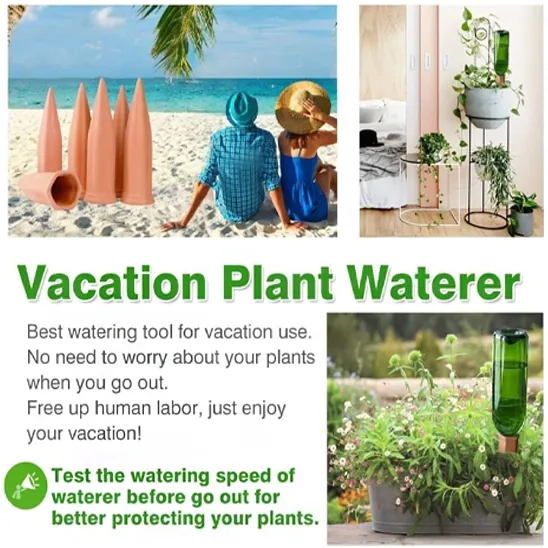 The package includes 6 plant watering stakes, offering affordability and high quality. The Remiawy plant watering spike is an ideal tool for you to recycle the used bottles and free up labor at the same time. It is designed to prevent overwatering and ensure watering when people go out for vacation. You should test the releasing speed of the self Watering Planter Insert before you go out to protect your plant’s life. After purchasing the Remiawy plant self watering insert, you will experience peace of mind, and your plant will thrive effortlessly and stay healthy.