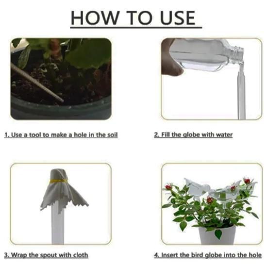 Using the Adabocute plant self watering insert is simple. Easily make a hole in the soil, fill the globes with water, and insert the globes into the soil. These glass self-watering globes can also be a thoughtful gift, featuring a beautiful bird design and coming in a set of 3 durable glass globes with great packaging. If anything goes wrong with your new plant watering bulbs, return them within 90 days for a full refund.