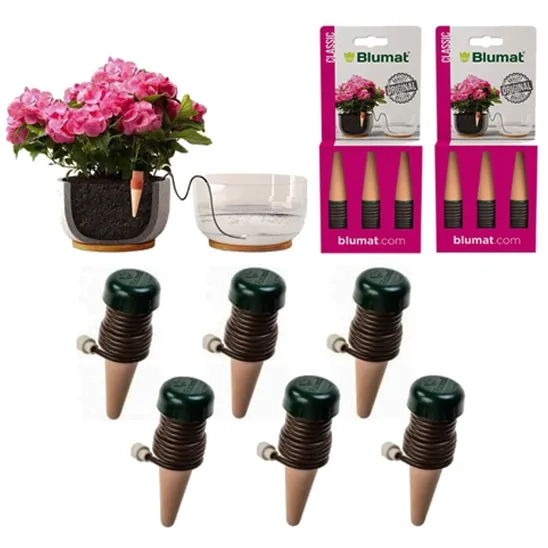 The Blumat classic plant watering stakes offer a convenient and efficient solution for automatic plant watering in pots. With a simple setup that takes just 15 minutes, these plant watering spikes draw water from any container and release it through the clay cone onto the soil, providing extended hydration for your plants. These plant watering stakes are ideal for travelers, ensuring plants are cared for and giving you peace of mind. These watering spikes are versatile and adaptable to various container sizes and plant types, making them suitable for a wide range of houseplants. By using these plant self watering inserts, you can say goodbye to the common issues of overwatering or underwatering your plants. Each plant can get a proper amount of water, promoting growth and thriving plants.