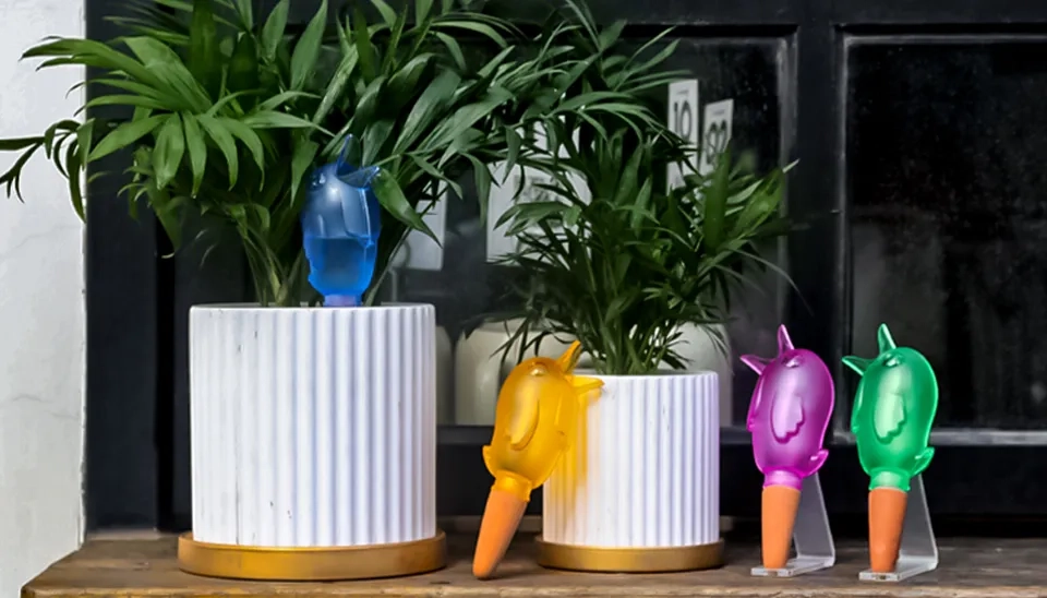 An enthusiastic buyer described the plant watering spikes as adorable and suitable for watering small pots.