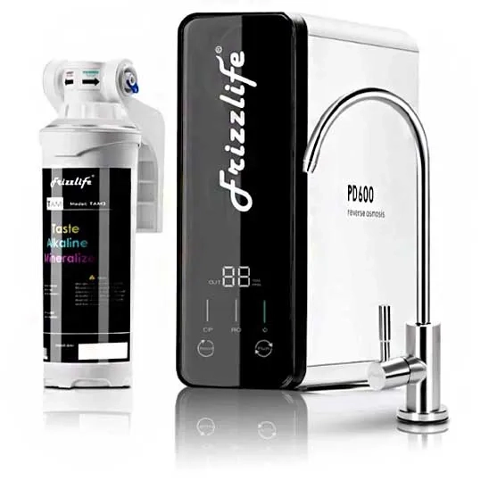 Product name | Frizzlife RO Reverse Osmosis Water Filtration System - 600 GPD High Flow, Tankless, Reduce TDS, Compact, Alkaline Mineral PH, 1.5:1 Drain Ratio, USA Tech Support, PD600-TAM3 |