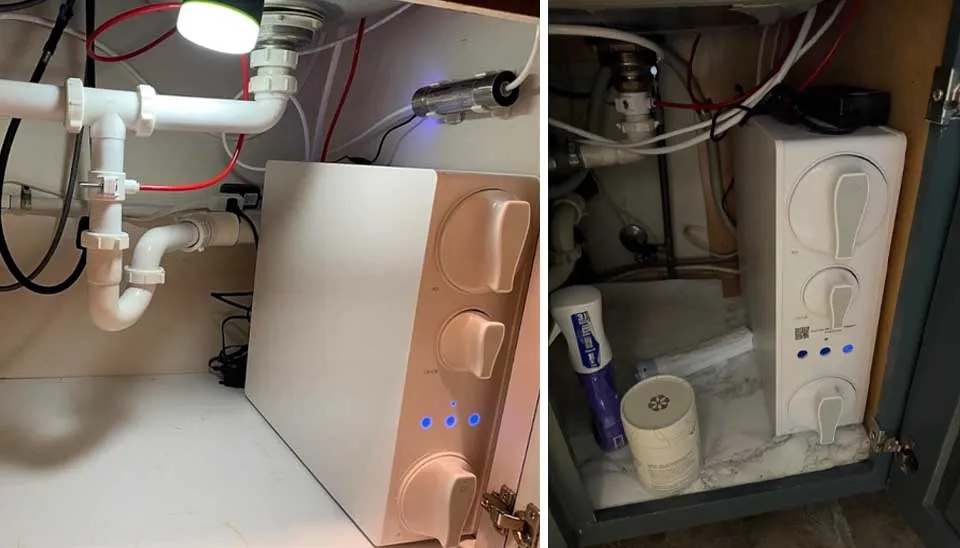 One reviewer appreciated the space-saving design of the Stokk system that took up less room underneath the sink compared to conventional tank models.