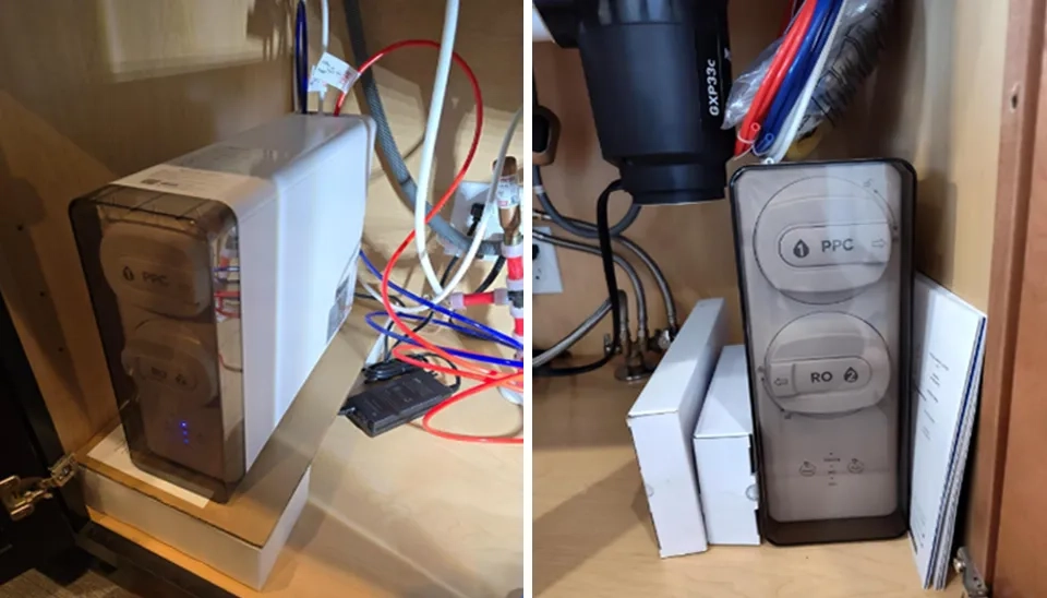 A disappointed user reported that this tankless RO water filter failed to produce enough water pressure to feed both the faucet and refrigerator water line.