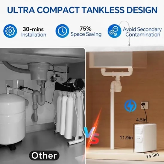 Are you looking for the top tankless RO water filters that deliver pure and safe drinking water to you and your loved ones while occupying little space in your under-sink cabinet? Our experts have explored different websites to find the best-selling tankless reverse osmosis systems, and in this article, you can find the 7 best, highest-rated products on the market in the year 2025. These products were selected based on the Bayesian ranking and the user’s favorable and critical reviews. The main goal of this article is to guide users in choosing the best product according to their needs, cost, performance, after-sales services, and other key features. If you want to ensure that you and your family drink healthy water, we highly recommend reading this article to make the most optimal and suitable purchase.