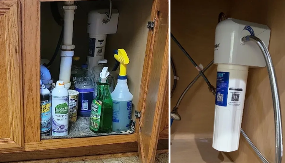 The under sink water filter leaking issue caused a tonne of damage to the user’s cabinets, even in less than a year, leading to disappointment and frustration.