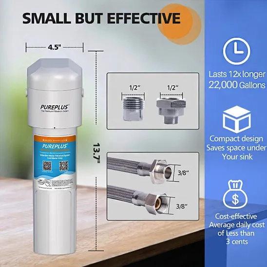 Product name | PUREPLUS Under Sink Water Filter, 22000 Gallons, 99.99% Chlorine Reduction, NSF/ANSI Certified Direct Connect Under Counter Water Filtration System |