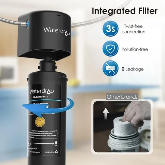 The Waterdrop under sink water filter fits nicely under the sink and the water tastes much better than before installing. The user is super happy and recommends this product.
