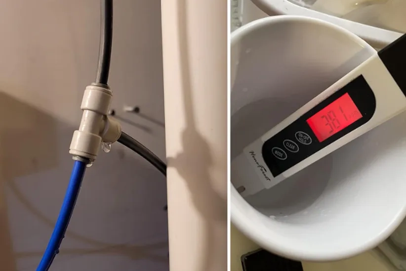 The user found that the water tasted great, and the purity of water (TDS in ppm) before installation was 414 and after installation was 23.