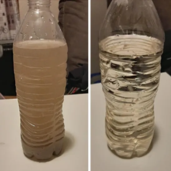 This camping filtration system effectively reduced the floating substances in the water, making the user satisfied.