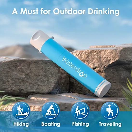 The product can be used with standard water bags or water bottles to drink water with more convenience. Whether you are on international or domestic travel, camping or just thinking about emergency preparedness, the Waterdrop camping filtration system fulfills all your water needs. It is lightweight and can be easily carried around in your pocket or on your neck. After receiving the filter straw, first uncap and infiltrate the straw in the clean water for 10 seconds to prime the filter.