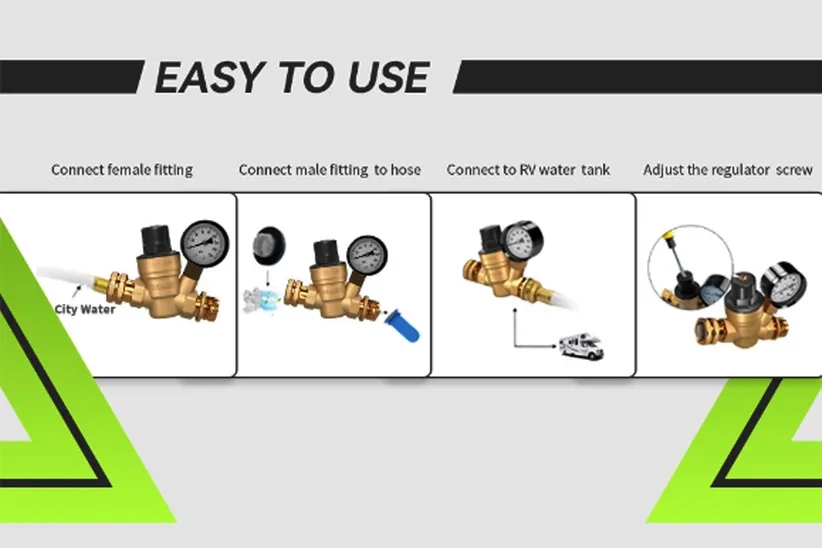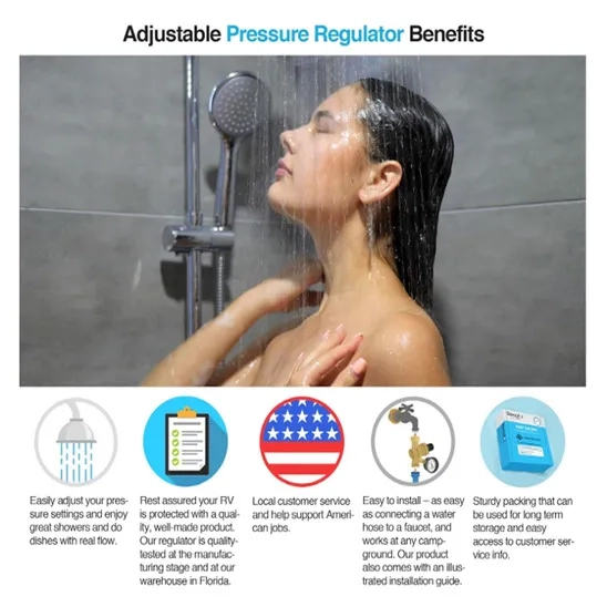 Product Name | RVMATE RV Water Regulator, Brass Lead-Free Water Pressure Reducer Kit, Adjustable Valve with Inlet Screen Filter, for Camper Travel Trailer |