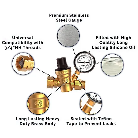 Product Name | Morvat Adjustable Lead-Free Brass RV Water Pressure Regulator with Oil Gauge |