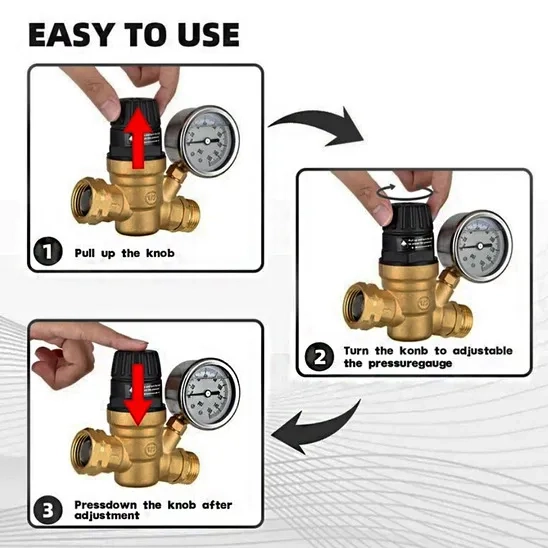 The product can easily reduce the 90 PSI to a safer range of about 35 PSI and operates simply.