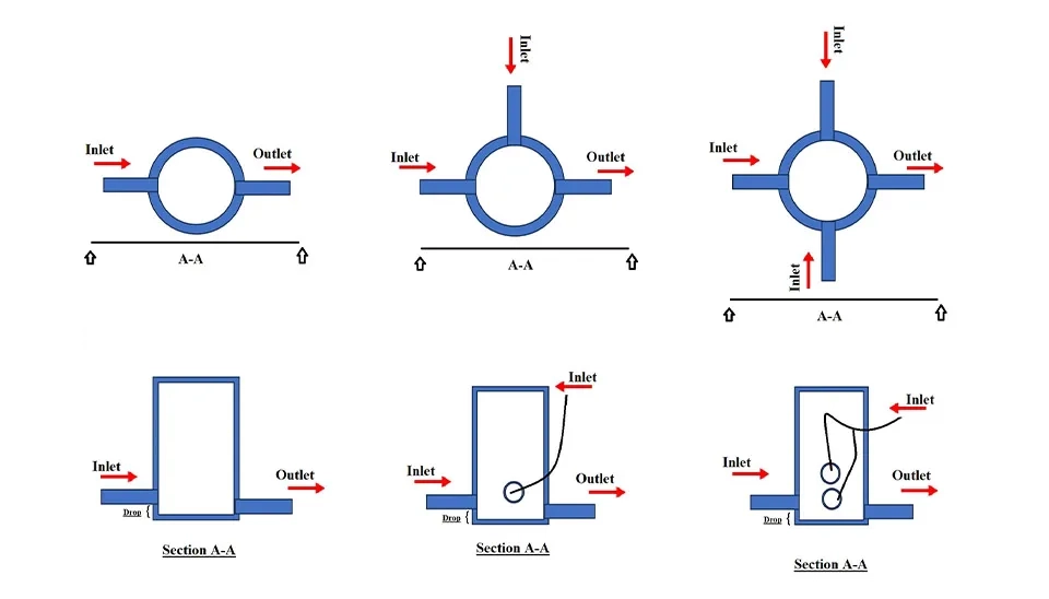 Note: The wet well and the pump are connected by a pressure pipe, which is called an inlet pipe to the wet well. However, the elevation of both the beginning and the end of this pipe should be equal to the bottom elevation of the wet well.