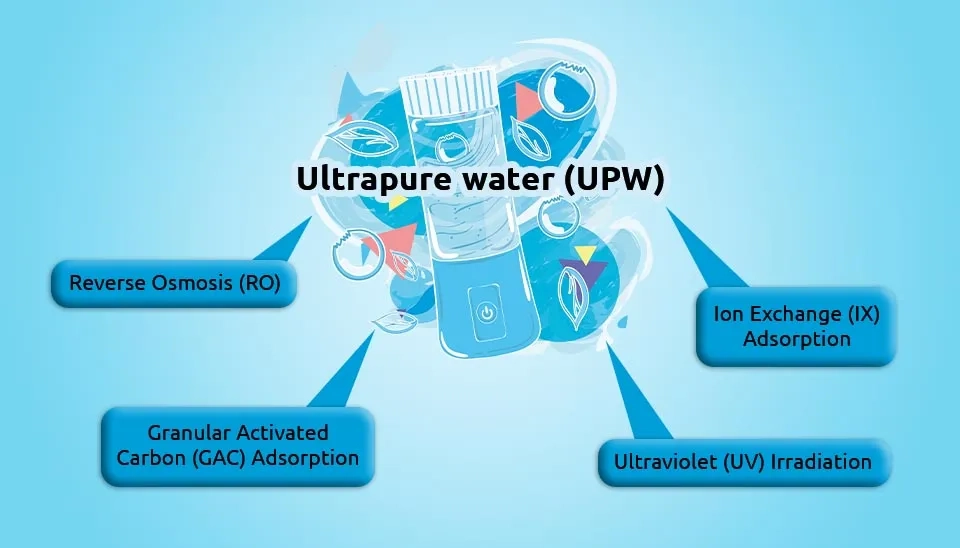 Ultrapure water production is an important process for various industries and applications including semiconductor manufacturing, pharmaceutical industry, etc. It is essential to remove all pollutants like ions, organic matter, microorganisms, etc. in the UPW production process, and in this case, several technologies have been developed. The main technologies include reverse osmosis, activated carbon, ion exchange, and ultraviolet irradiation which can be used together to better achieve the purpose of ultrapure water production. However, further research should be carried out to optimize processes for a compact and high-performance UPW production system.