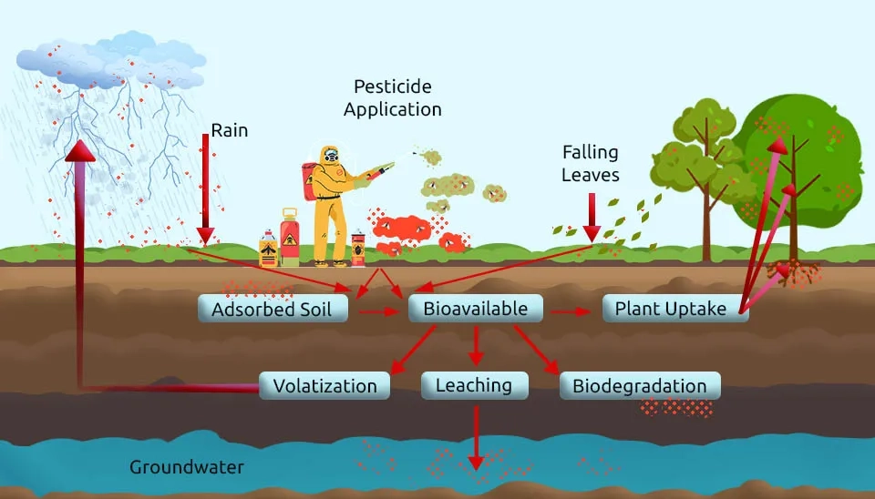 Pesticides and fertilizers are 2 types of agrochemicals used to boost crop production, repel pests, and destroy weeds. Overdosing and repeated use of pesticides and fertilizers due to poor literacy, lack of training, and inappropriate mixing contribute to water resource contamination. Inorganic or chemical fertilizers contain a considerable value of nitrogen, phosphorus and potassium and also heavy metals. it is estimated that the use of N, P, and K will be grown by 172%, 175%, and 150% by the year 2050. Pesticides divided into 4 general categories which are: insecticides, herbicides, rodenticides, and fungicides. They are used to eliminate pests, weeds, and insects but because of their toxic essence, they can also lead to human health disorders and poisoning. Application of some pesticides such as DDT and HCH are prohibited in developed countries but they are still used in many countries. Through rainfall and irrigation, all of the mentioned contaminants are absorbed by the soil, reaching the groundwater, and can threaten human health (Khan et al., 2018; Srivastav, 2020).