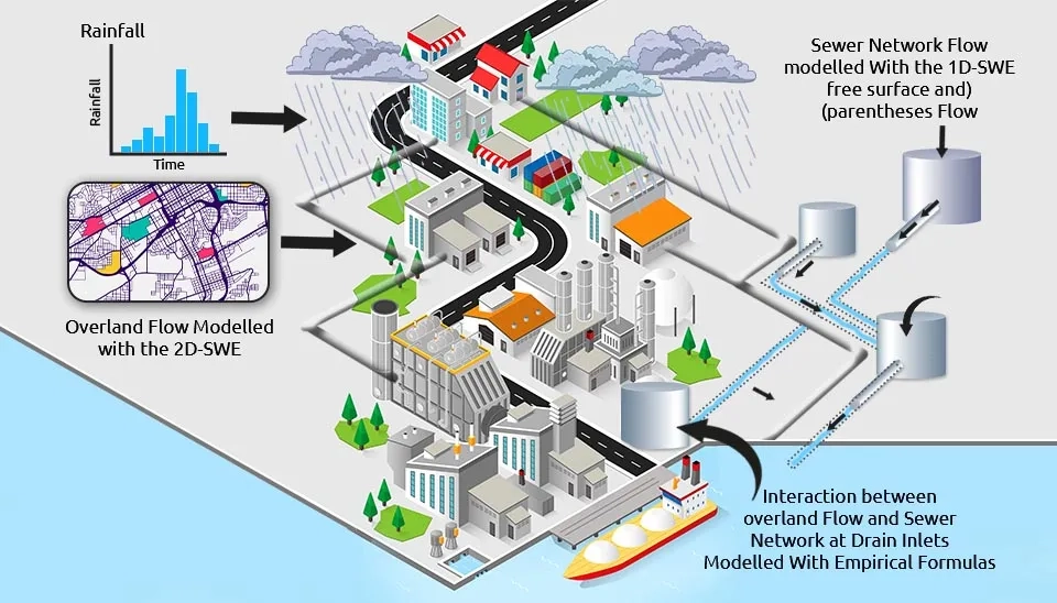The three basic and effective components of urban flooding are rainfall, surface runoff, and urban drainage networks, which are included in urban flood models. In recent years, although the quality of input data and computing capacity have improved, the dynamics and nonlinear interactions between hydrological, hydromorphological, hydraulic, and hydrodynamic processes have increased the complexity of urban flood models. In addition, the improvement of flood models’ performance should be compatible with their accuracy and efficiency. This is because, with the increase in accuracy, the cost of calculation increases and the efficiency decreases, and vice versa. In the following, urban flood models are examined in detail (Guo et al., 2021).