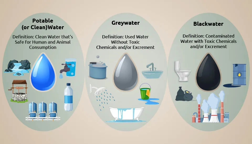 The term greywater refers to domestic wastewater, which includes wastewater from washing machines, bathtubs and showers, laundry, hand-washing basins, sinks, and kitchen sewage. Greywater contributes a substantial percentage of domestic wastewater, about 50 to 80 percent. Choosing the grey color for water indicates that the grey water quality is less than blue water.