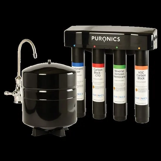 The Next Generation of Drinking Water Filtration The Micromax 8500 drinking water system is our premium under-counter reverse osmosis system. The five-stage filtration process is incorporated into four high-capacity sanitary quick-change filters, including two prefilters, an RO membrane and a post filter. The Puronics® Micromax™ 8500 drinking water system is designed with advanced filtration technology for the ultimate protection and great tasting crystal clear water. This 5-stage system effectively reduces the majority of contaminants such as pharmaceuticals, PFAS (potentially toxic chemicals), chlorine, dissolved metals, lead, waterborne cysts, and others that may be present in your water supply. The simple design fits easily under any kitchen sink. The Micromax™ 8500 will assure your family will benefit from the reduced risks associated with emerging manmade and other contaminants that may be in water supplies.